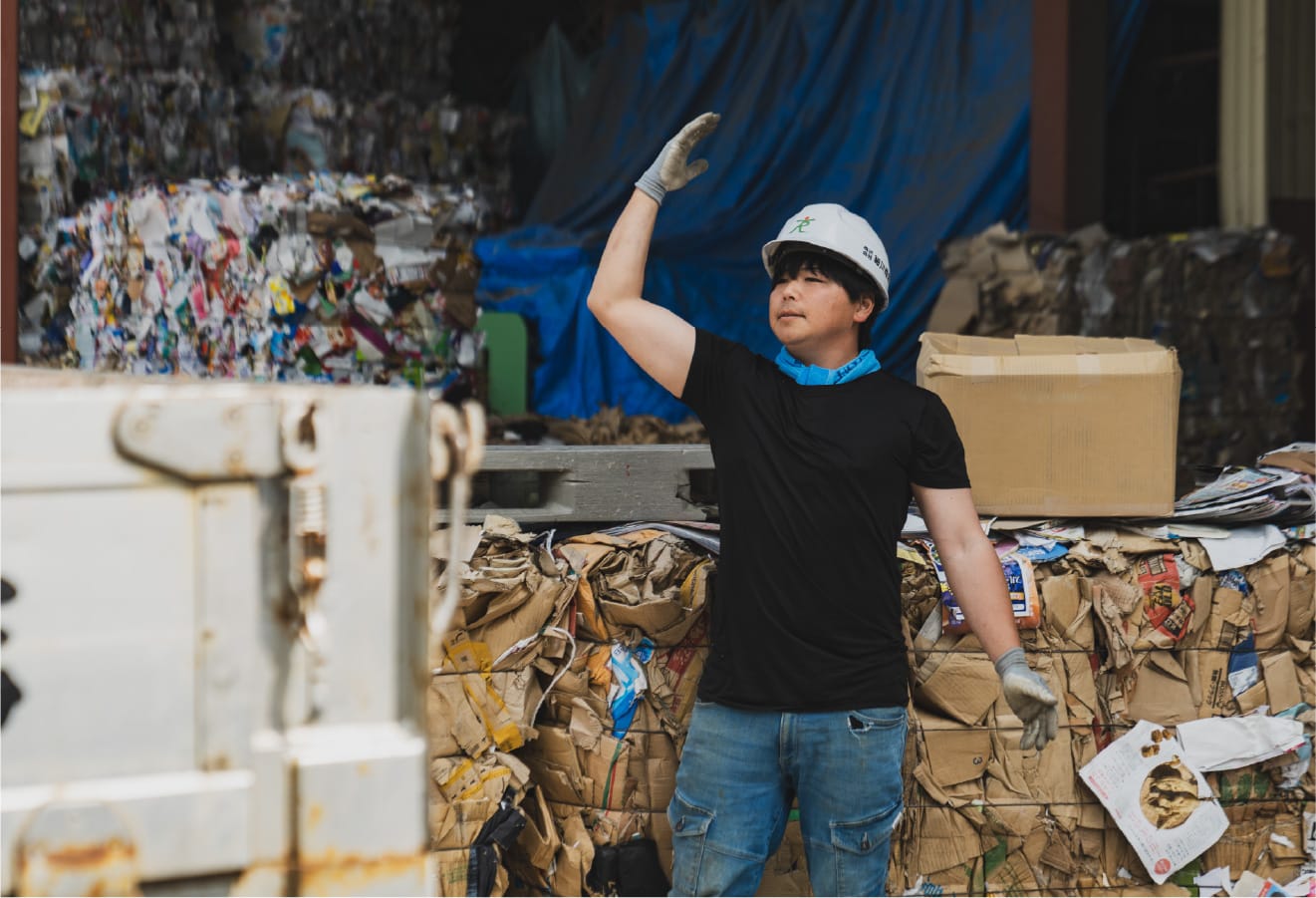 お客様のもとへ訪問し、鉄や紙などの資源を回収。その後、社内で分別や処理の準備を行います。
