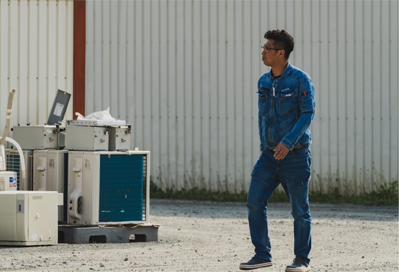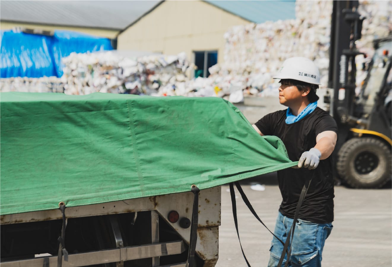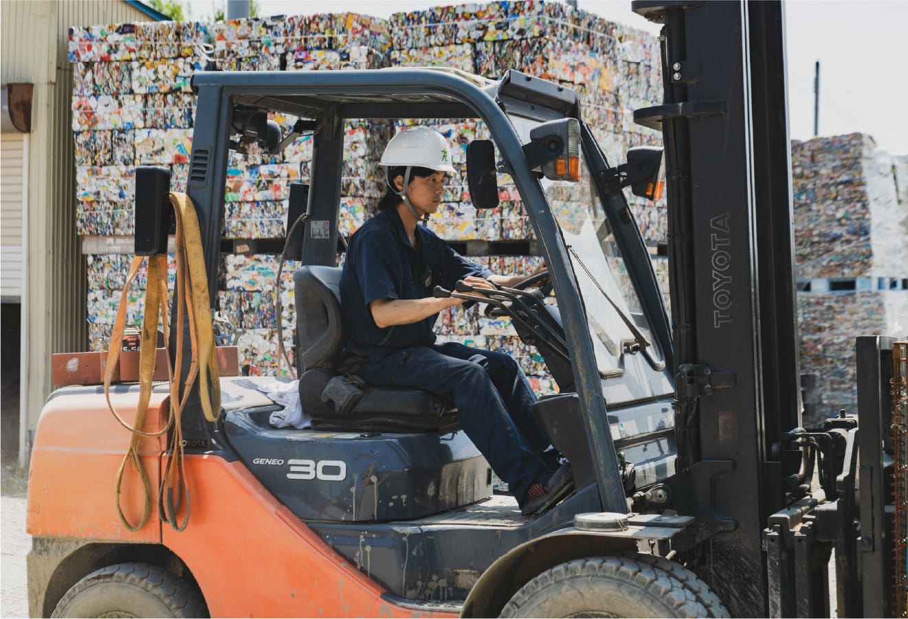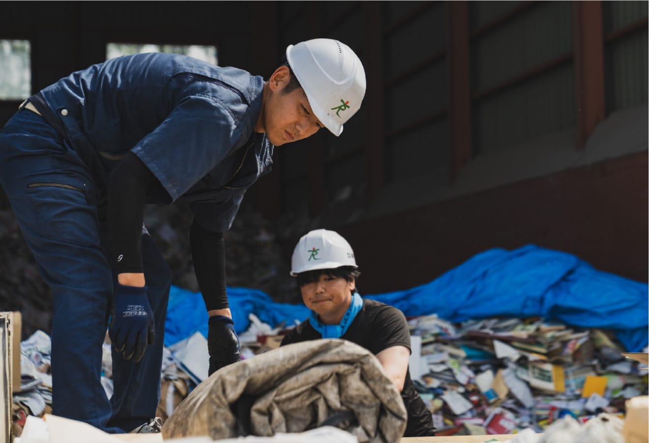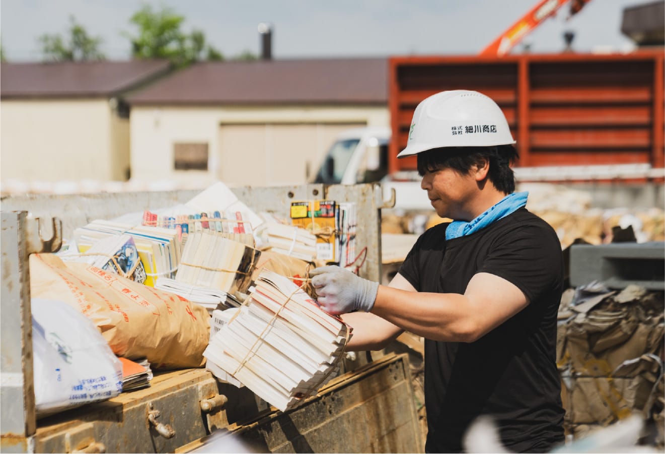 お客様のもとへ訪問し、鉄や紙などの資源を回収。その後、社内で分別や処理の準備を行います。